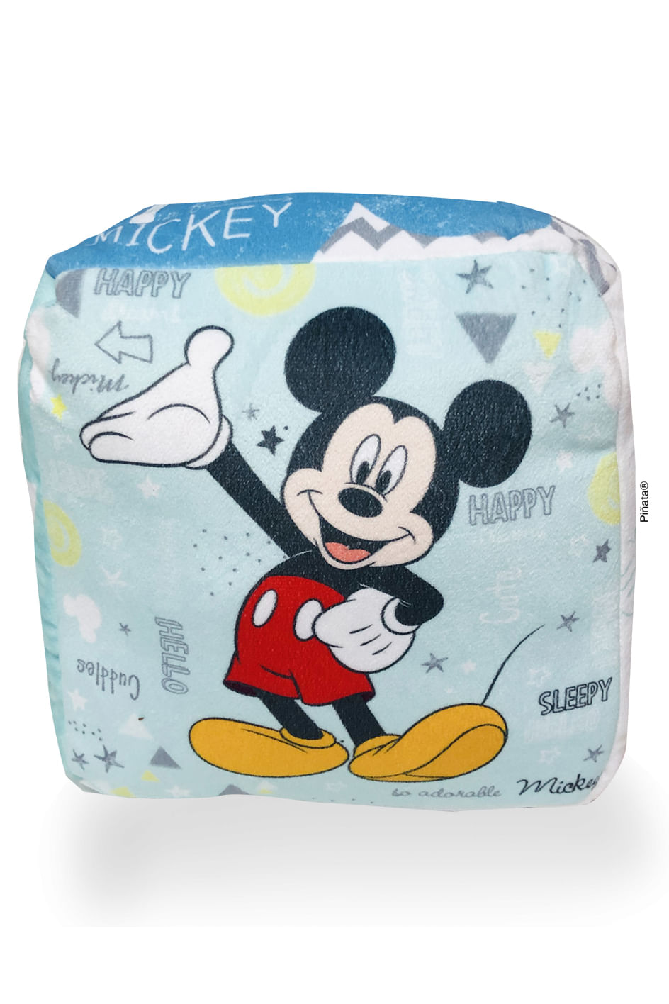 Almohadón Cubo Piñata Mickey Baby! El almohadón Soft Plush es súper suavecito para que tu bebé pueda jugar y aprender al mismo tiempo. La forma del cubo está especialmente diseñada para los bebes. Cada lado tiene un diseño diferente para que tu bebé pueda ir descubriéndolas a medida que juega. Podrás dejarlo en su cuna para decorar su cuarto, llevarlo al cambiador o a su lugar de juego para que su personaje favorito este siempre junto a él. Es súper suave y liviano gracias a su cubierta externa de soft plush y relleno de poliéster para que pueda moverlo fácilmente. Medida: 20 cm x 20 cm Relleno: 100% Poliéster Composición: 100% Poliéster