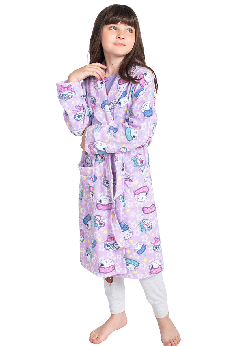 Bata polar de nena "Gatitos" -Marca: Mariené -Línea: Marienitas -Polar antipeeling -Color: lila - celeste -SKU 2075