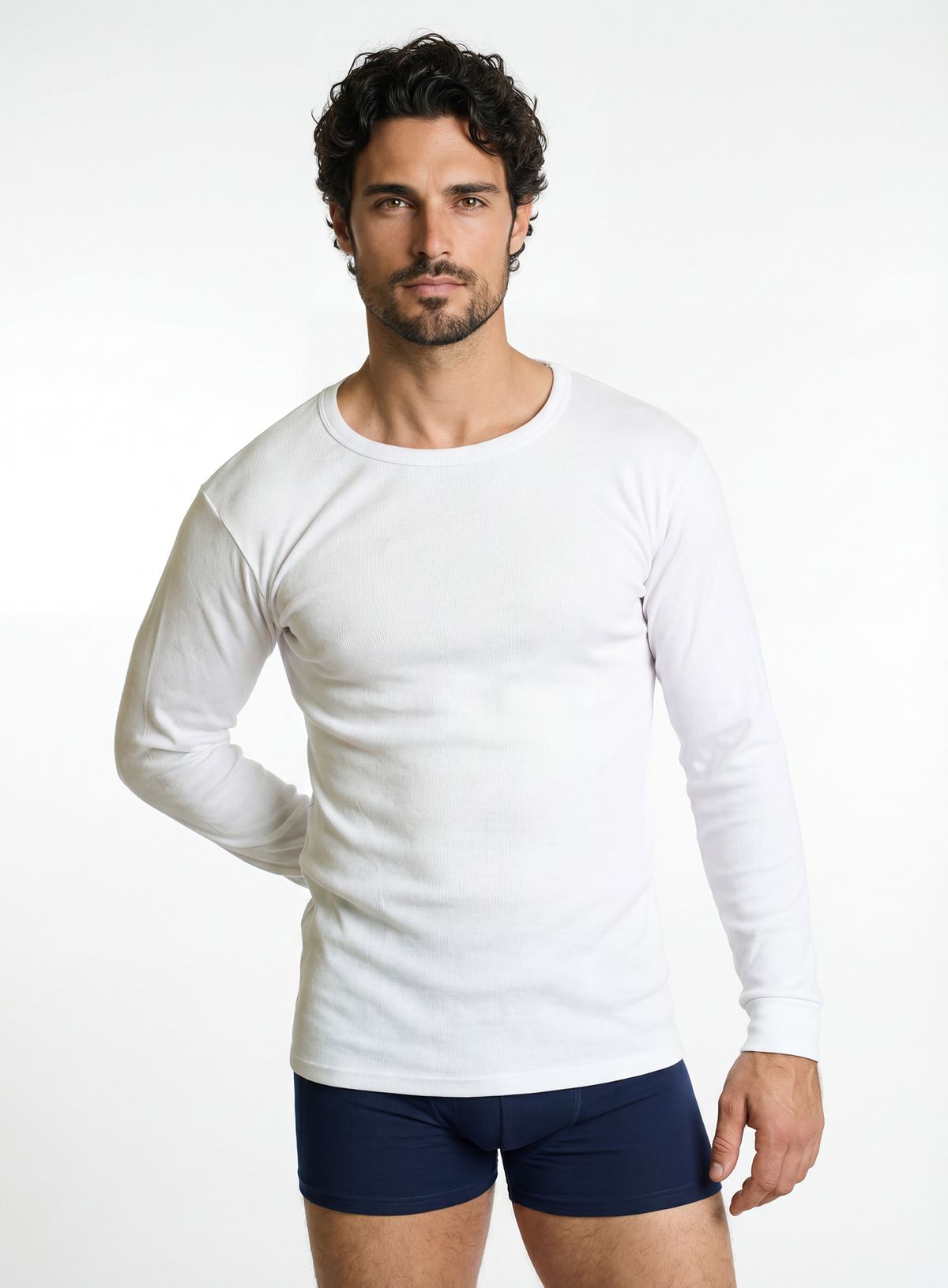 Su diseño clásico la convierte en una prenda versátil, perfecta para usar sola o como primera piel debajo de otras capas. Un básico funcional para el invierno.