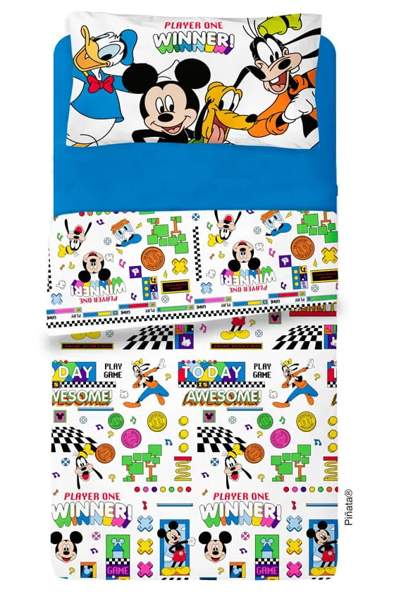 Juego de sábanas mickey play 1 y 1/2 plaza piñata