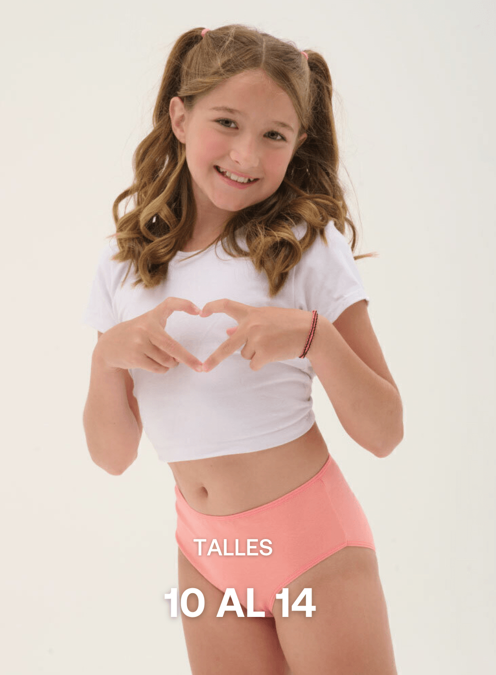 Pack x2 bombacha de niña tipo culotte -Marca Kiero -Línea Te Kiero -Colores: blanco - aqua - rosa - coral - amarillo -Talles: 10 - 12 - 14 -Tela: algodón y lycra SKU 679