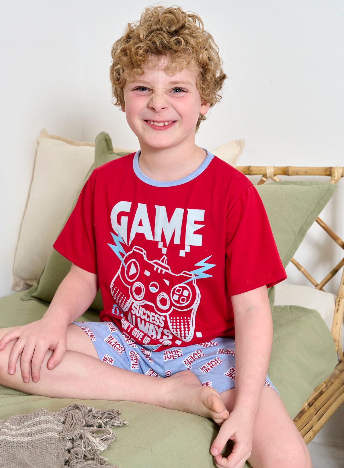 Pijama Gamer temporada 2025 -Marca Roko's boys -Talles: 4 - 6 - 8 - 10 - 12 - 14 - 16 -Colores: rojo - gris -Tela: jersey El modelo usa el talle 8.
