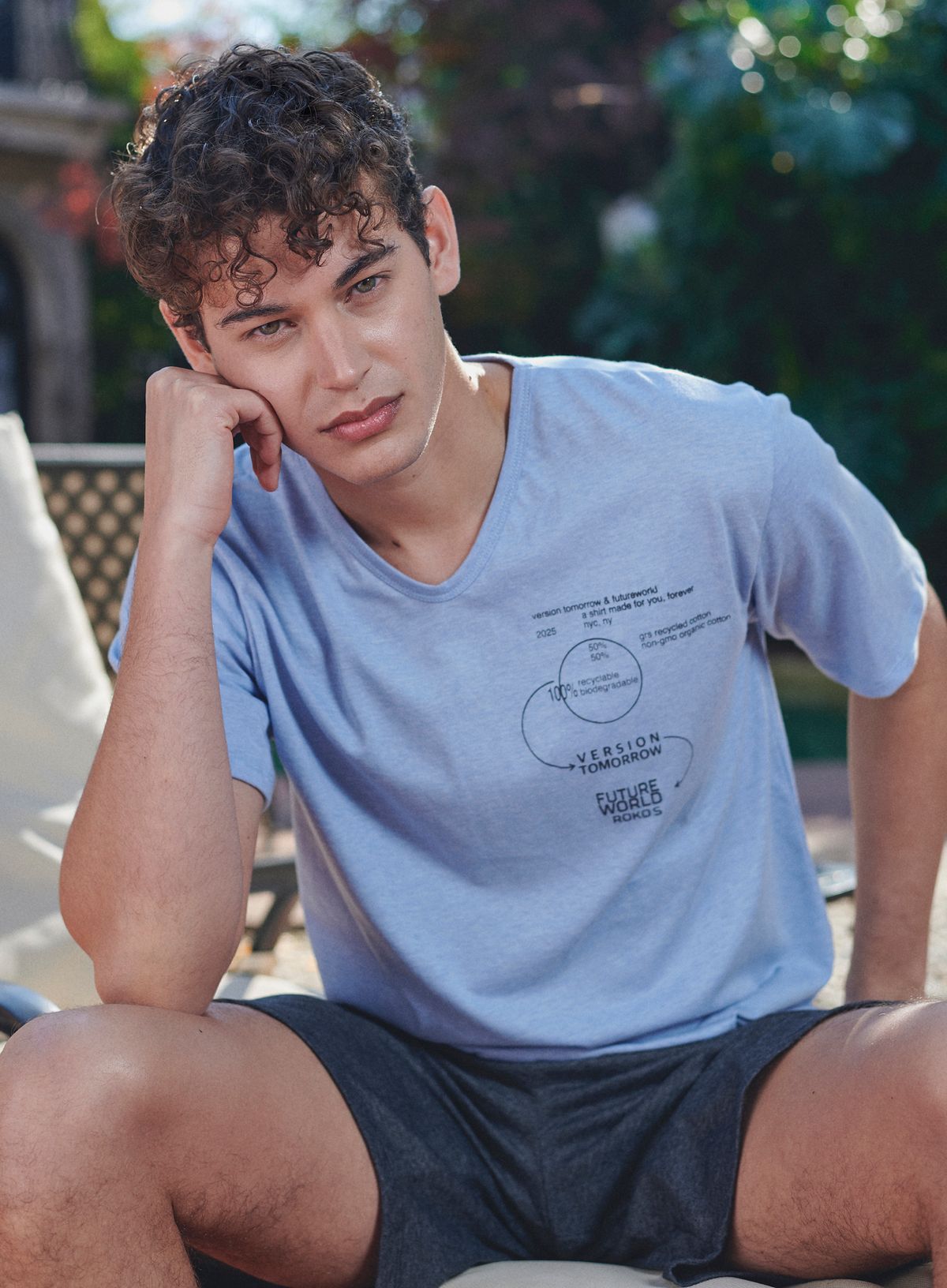 Pijama Tomorrow plus size Temporada verano 2025 -Marca Roko's Man -Tela: Jersey -Talle: XXL/56 - XXXL/58 - XXXXL/60 -Colores: celeste - bordó SKU: 2390E